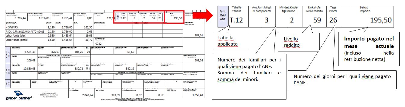 Risposta: i dati dell’assegno al nucleo familiare si trovano nella parte inferiore del cedolino: